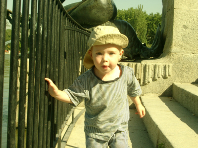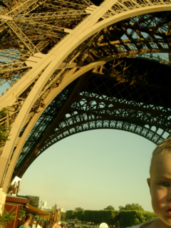 Auf dem Boulevard ST. Germain kommt uns Fatih Akin entgegen. Er hat schon ganz andere groß herausgebracht - mich aber lasse ich nicht entdecken. Ich tue deshalb so, als ob ich schlafe. Als sich der Promi-Alarm gelegt hat, nähern wir uns einem kleinen Restaurant, das Papa von früher kennt. Sie haben ihr Essen wohl zu günstig verkauft. Jetzt ist in dem Haus eine Galerie. Papa wird sich wieder einmal seines zunehmenden Alters bewusst. Nachmittags ist der Eiffelturm - jetzt mal aus der Nähe - dran. Ist gut. Schade, dass man ihn nicht ständig umkippen und wieder aufbauen kann. Den Triumphbogen sehe ich später aus mäßiger Entfernung. Ich habe mich bis hierher gut benommen und meine Eltern verzichten daher auf eine Durchquerung des etwa 24spurigen Kreisverkehrs, der diese Sehenswürdigkeit umgibt.