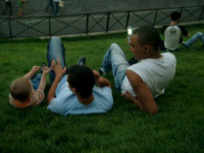 Der erste Tag lässt wirklich keine Wünsche offen. Wir treffen M., der Maler, Autor und Regisseur ist, dabei jedoch recht wenig zu tun hat, an unserem Hotel. Er winkt mit Tickets für eine Seine-Rundfahrt. 90 Minuten lang schippern wir durch Paris. Ich bin vom ersten Augenblick an vom Eiffelturm gefangen. M. und meine Eltern kennen die Sehenswürdigkeiten offenbar schon und konzentrieren sich auf Baguette, Camembert und einige Flaschen Rotwein. Anschließend geht es hoch zur Sacre Ceur. An einem Abhang setze ich mich zu zwei freundlich wirkenden Marokkanern. Sie machen Fotos mit ihren Handys, lassen mich telefonieren und Musik hören. Bei ihnen fühle ich mich sicher, während M. und meine Eltern weiter oben eine neue Flasche Rotwein öffnen. Irgendwann ruft M. zum Aufbruch. Ich glaube, er ist eifersüchtig.
