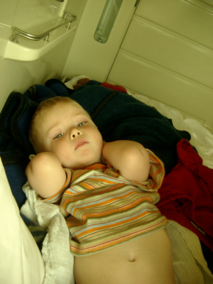 Ich wache gut erholt in einem fahrenden Hotel auf. Papa sieht hingegen ein wenig gerädert aus. Nachdem er seine Flugangst einigermaßen im Griff hat, zeigt sich jetzt eine viel schlimmere Phobie bei ihm: Zugangst. Er hat die ganze Nacht kein Auge zugekriegt. Um das herauszubekommen, haben wir also schlappe 500 Euro in diese Fahrt gesteckt. Vielleicht sollte Papa die Kohle demnächst besser in eine Therapie investieren. Ich schaue voller Eiffelturmerwartung aus dem Zugfenster. Aber viele kleine Eiffeltürme entlang der Strecke entpuppen sich als ordinäre Strommasten. Madrid empfängt uns mit 40 Grad Hitze, und das um 10 Uhr morgens. Sämtliche Sightseeingpläne werden sofort auf Eis gelegt. Die Familie hängt lieber in einer einigermaßen lauwarmen Kneipe am Hinterausgang des Teatro Espa"ol ab. Das Personal raucht merkwürdig riechende Zigaretten, zapft mit mir auf dem Arm das ein oder andere Bier und baut für mich zwischendurch Papierflugzeuge, die Dank der enormen Thermik sehr lange Strecken zurücklegen können.