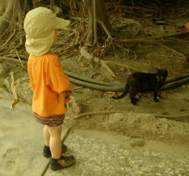 Um hier außerhalb der üblichen Strand-Katze-Essen-Katze-Strand-Schlafen-Schiene was zu unternehmen, müsste es etwa zehn Grad kühler sein. Da mir mit einem Konjunktiv wenig geholfen ist, bleibe ich bei Strand, Katze, Essen (inklusive Trinken) und Schlafen.